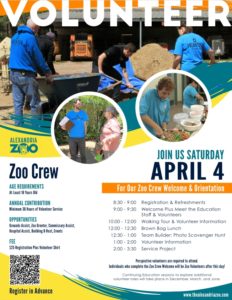 We invite everyone to join the Alexandria Zoo Volunteer Zoo Crew team to help us care for our animals, engage our guests, and support conservation efforts. Individuals who participate will be Zoo Volunteers after this day! Afterwards, they can immediately start volunteering around the zoo. This is an all-day event that concludes with a group service project. If you are at least 16 years old and ready to trade in your normal routine for a truly wild adventure, complete our orientation and join our passionate crew!