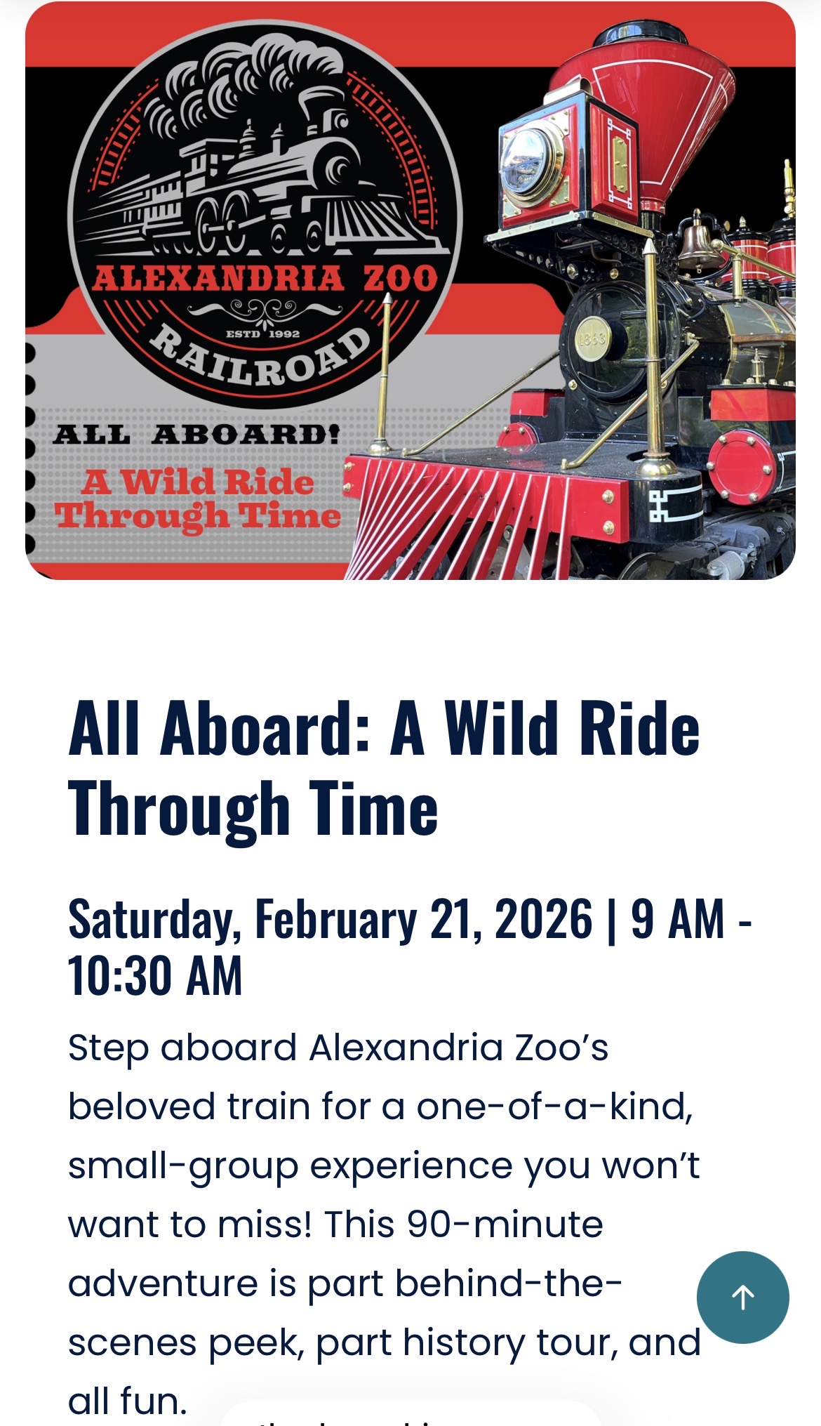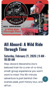 Step aboard Alexandria Zoo’s beloved train for a one-of-a-kind, small-group experience you won’t want to miss! This 90-minute adventure is part behind-the-scenes peek, part history tour, and all fun.