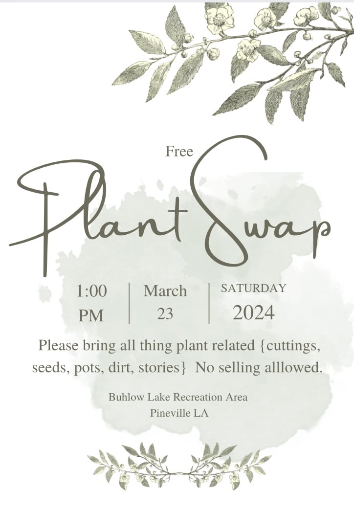 This is a free plant swap. Bring all of your seeds, multiplying plants, old pots you don’t use, anything plant related that you want to share with others. We’ll be at Buhlow recreation area, under the pavilion near the playground.