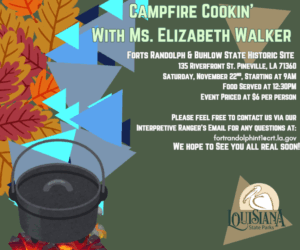This event also includes a cooking demonstration by re-enactor Ms. Elizabeth Walker!