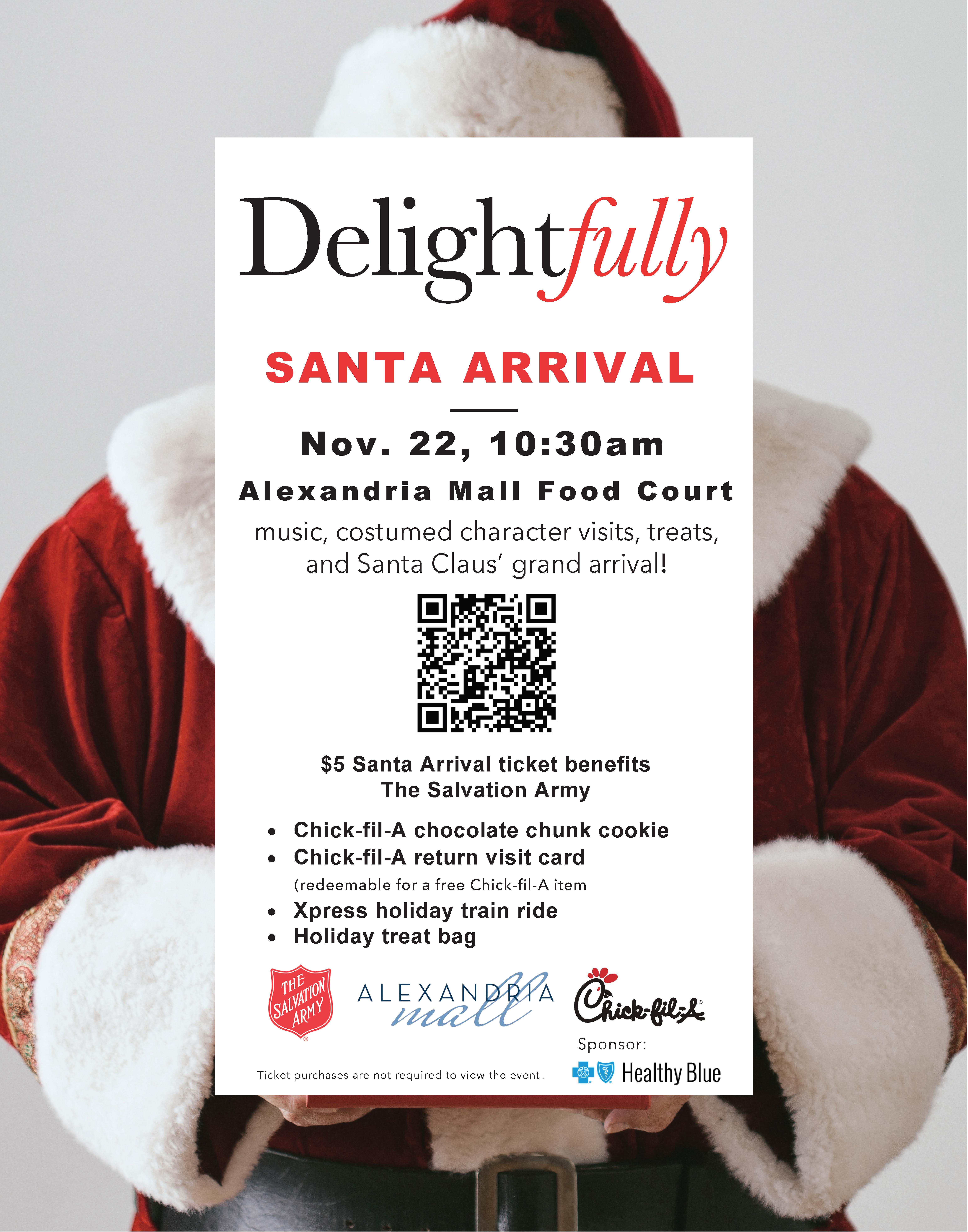 Delight in a morning at the Alexandria Mall Food Court filled with music, costumed character visits, and Santa Claus’ grand arrival! Parade will follow to Santa’s holiday home for a ride on the Xpress holiday train, share wish lists with Santa and photo opportunities.