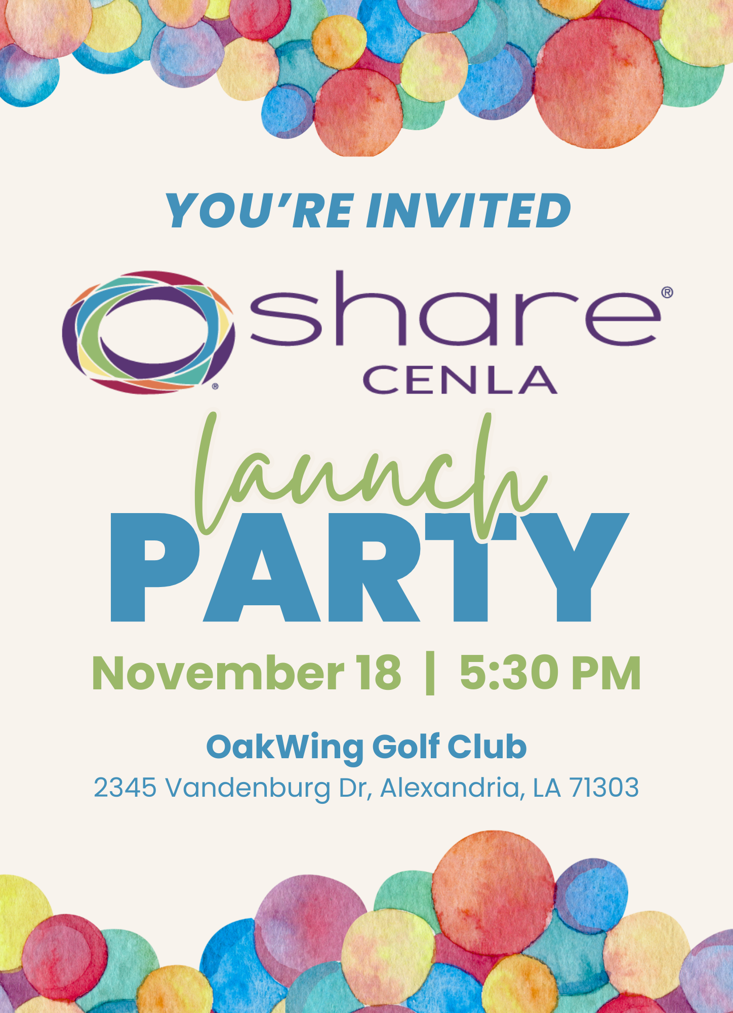 Join Central Louisiana Community Foundation for an evening of fun as we celebrate the launch of our new giving platform, Share Cenla!
