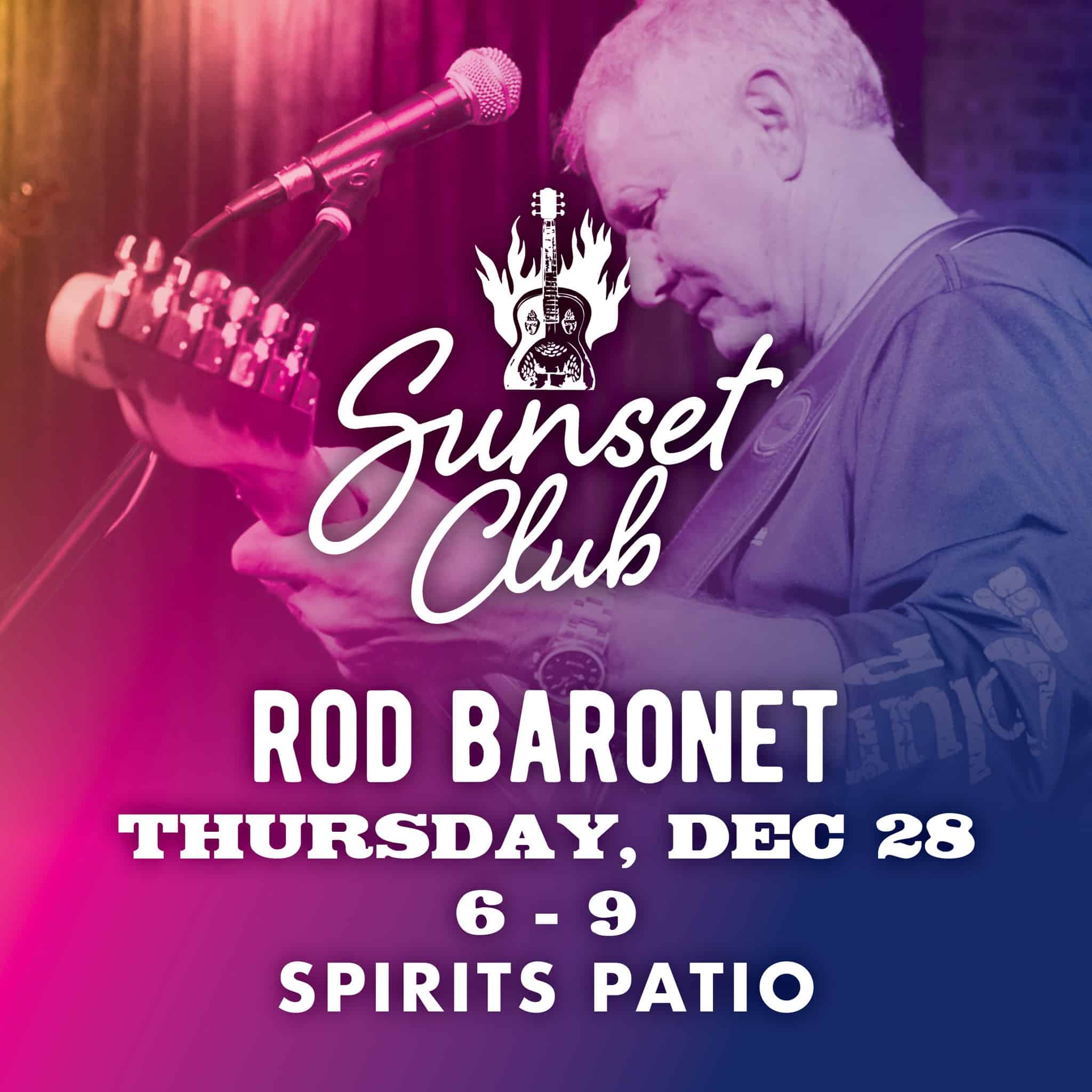 Join us for Thursday Sunset Club on the Spirits Food and Friends PATIO in Alexandria with live music with THE Rod Baronet! Come hang with us, sip on a cocktail and enjoy music from the 60s, 70s, 80s and beyond…