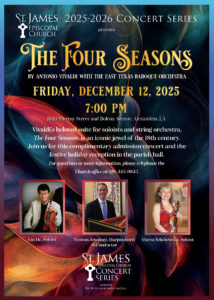 East Texas Baroque string orchestra playing period instruments presents the iconic jewel of the Baroque period, Antonio Vivaldi’s beloved THE FOUR SEASONS. The four concertos take the listener through the composer’s musical expressions of rustling leaves, delicate streams, barking dogs, claps of thunder, birdsongs, dancing peasants and icy winds.