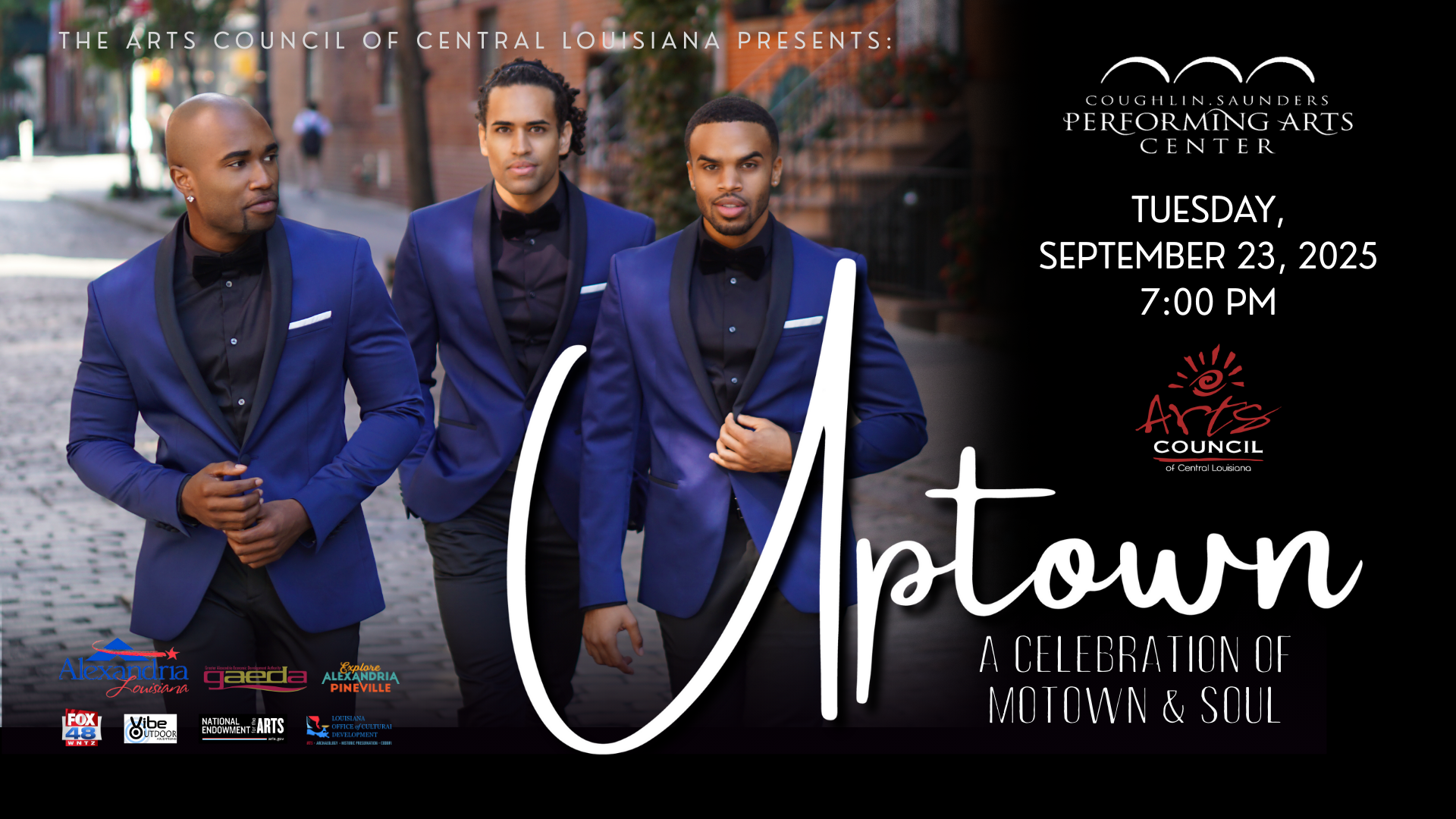 We are please to present, Uptown in the Coughlin-Saunders Performing Arts Center on Tuesday, Sept. 23rd at 7PM!